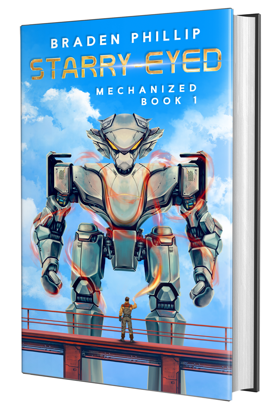 Braden is a sci-fi author and aspiring mech mechanic. Starry Eyed is his debut novel.He was built in a garage, calibrated by progression novels, and activated sometime in the early 90s. When he’s not writing, Braden enjoys running diagnostics on long forest trails, turbo-charging his bookshelf, and attempting to drift through long to-do lists.